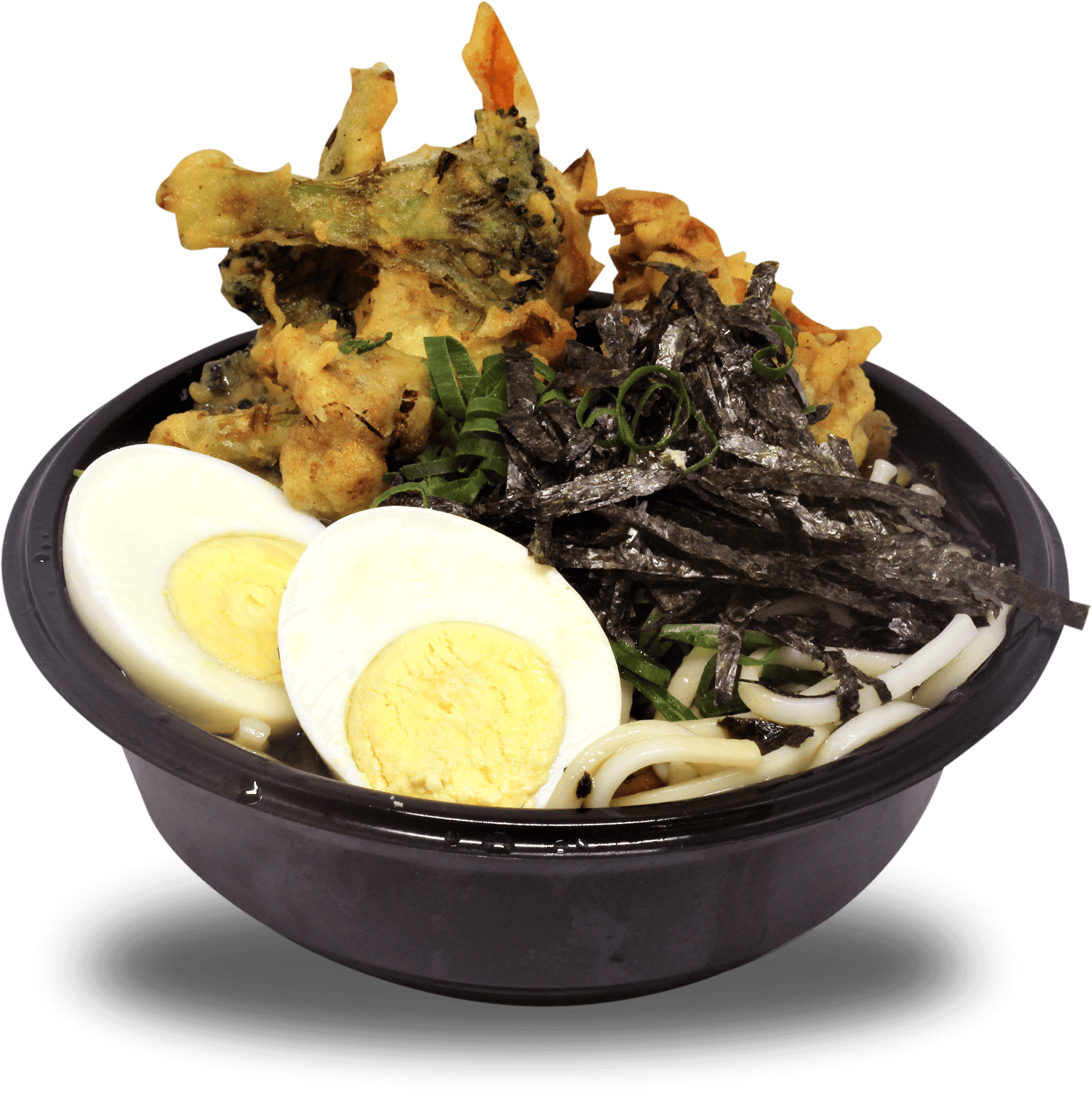 Macarrão especial, tempurá de legumes, ovo, nori, cebolinha e caldo udon.